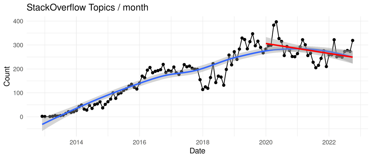 Same again. I could show you more, but across most of the project, this pattern repeats - of all the sections I checked, only DevTools was increasing as of Jan 2023.